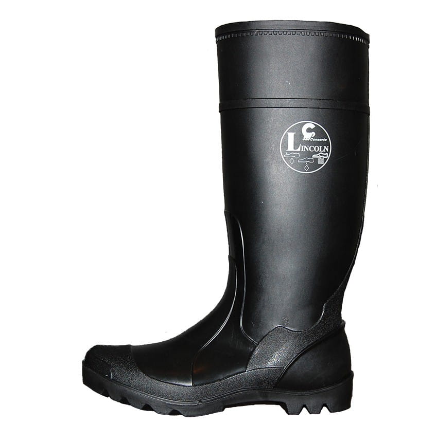 Obuwie wodoodporne LINCOLN firmy Consorte wykonane z PCV w kolorze czarnym.